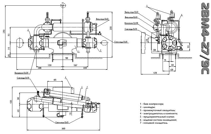 Так же в раму встроен асинхронный двигатель типовой модели А2К 85/24-8/16УХЛ4 обеспечивающий работу компрессора.