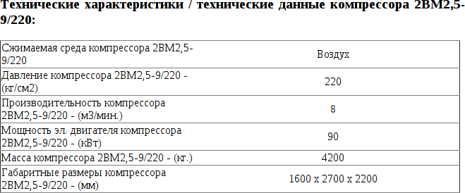 Так же комплектуется приборами для контроля состояния и качества компрессора 2ВМ2,5-9/220.